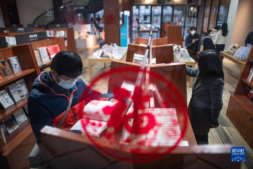 1月30日,市民在武汉卓尔书店内阅览图书。