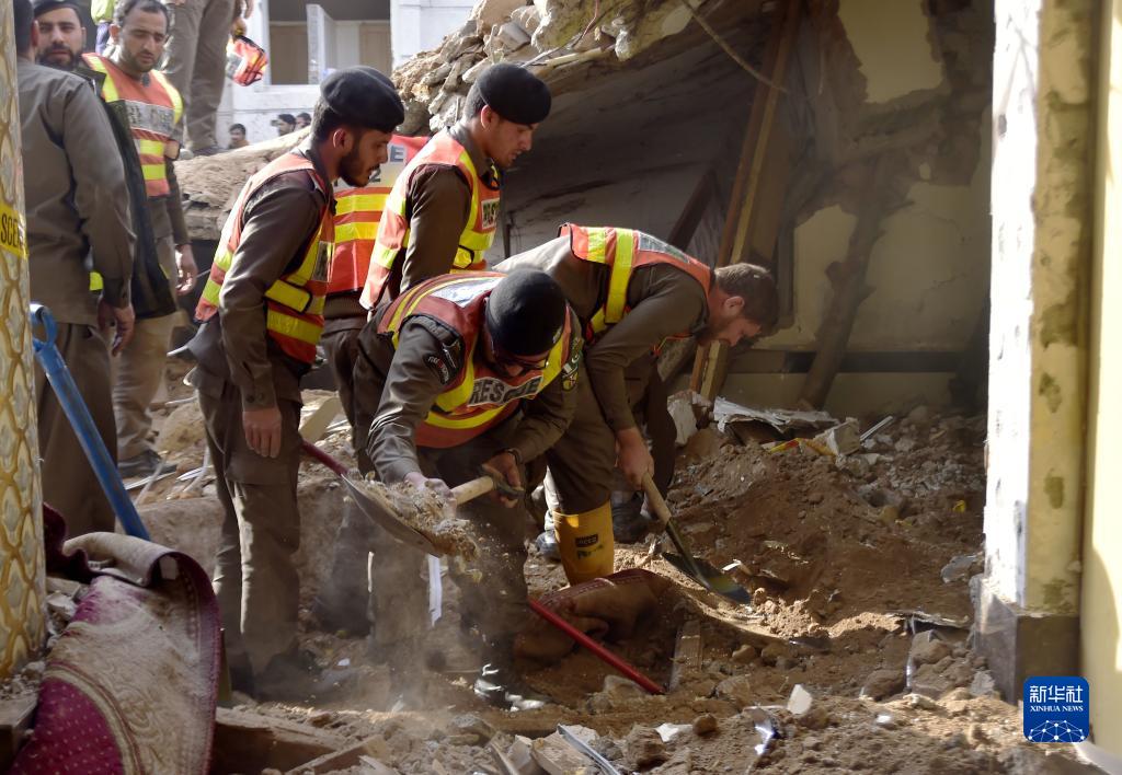1月31日,在巴基斯坦白沙瓦,救援人员参与搜救行动。