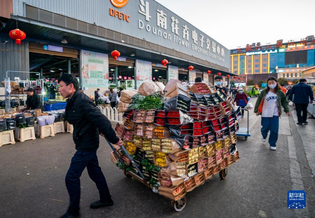 近日,受鲜花节庆消费拉动作用等因素影响,位于云南省昆明市的斗南花市鲜花价格行情全线上涨,迎来新年“开门红”。