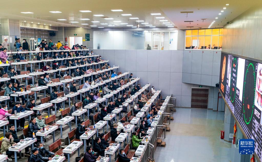 1月31日,采购商在昆明斗南花市参与鲜花竞拍。