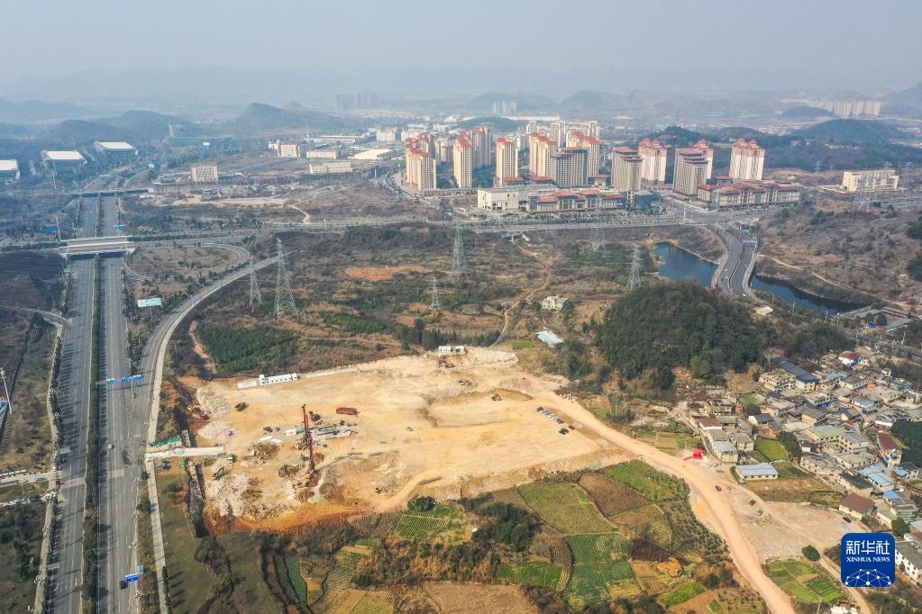 这是2月1日拍摄的贵安美的云一期土建总承包工程项目施工现场(无人机照片)。