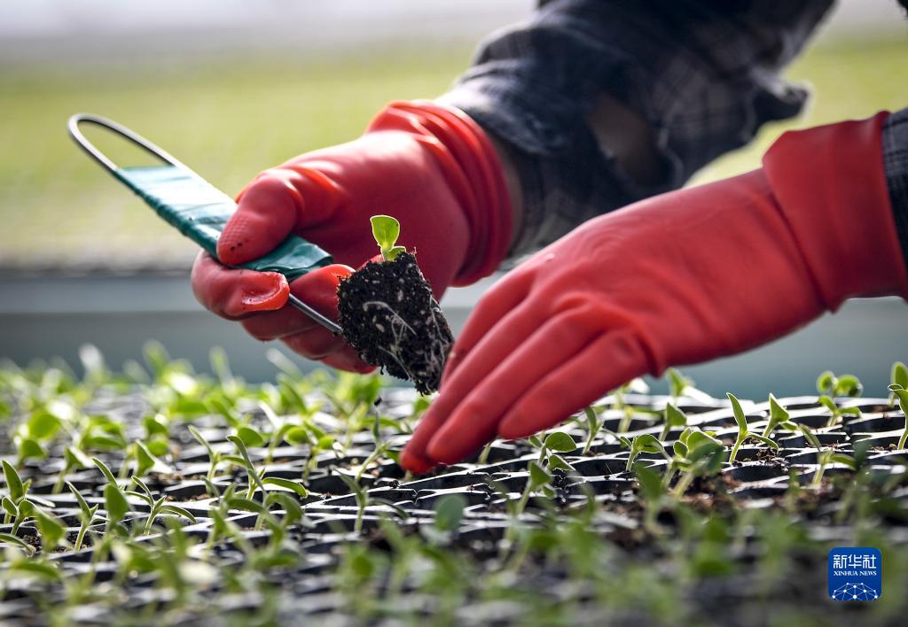 临近立春,宁夏银川市贺兰县各主要种苗繁育基地的大棚内满眼绿意,工人们忙着为即将到来的春耕培育幼苗。