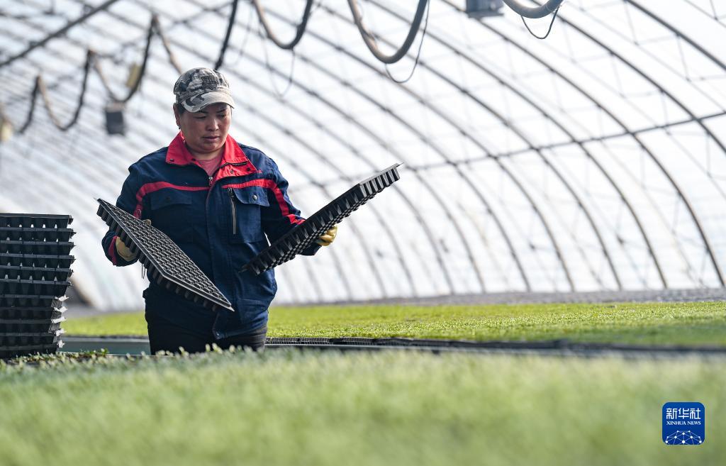 临近立春,宁夏银川市贺兰县各主要种苗繁育基地的大棚内满眼绿意,工人们忙着为即将到来的春耕培育幼苗。