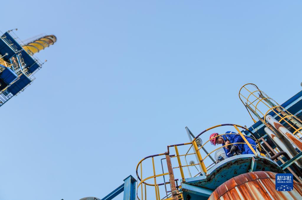 李艳在厂区内的装置上巡检(2022年11月8日摄)。