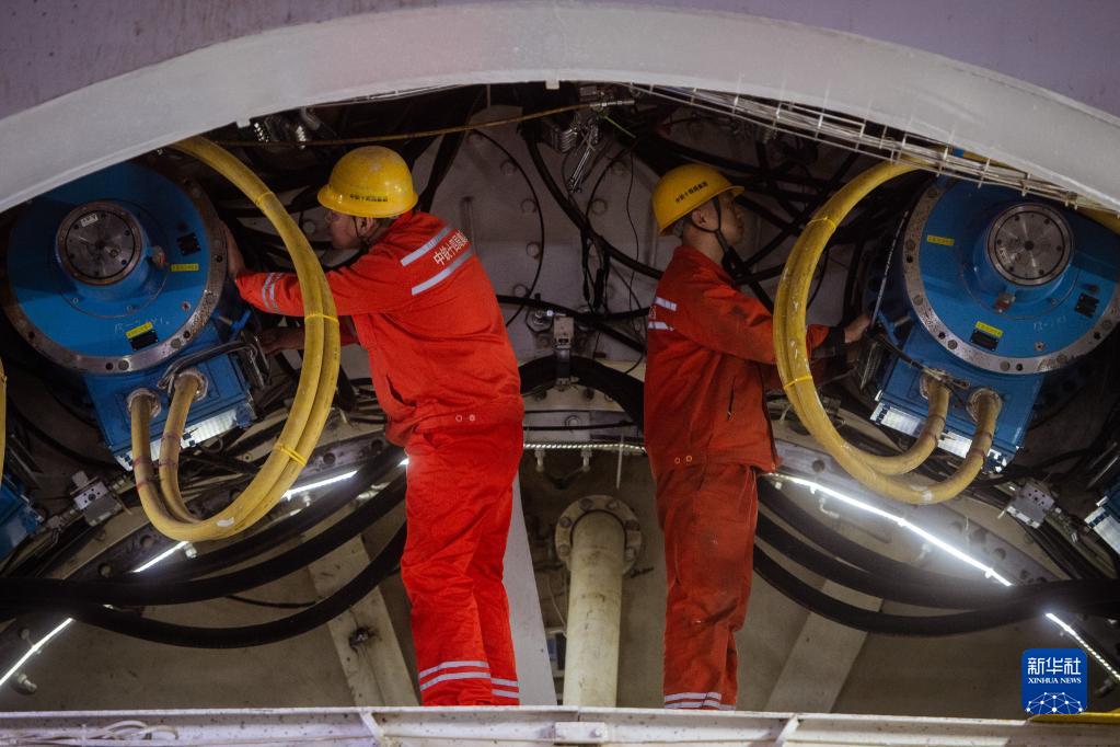 2月1日,中铁十四局工人在检查刀盘驱动电机。