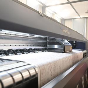 在天津市武清区崔黄口镇凯利地毯有限公司,工人在查看地毯印花机的运行情况(2月1日摄)。