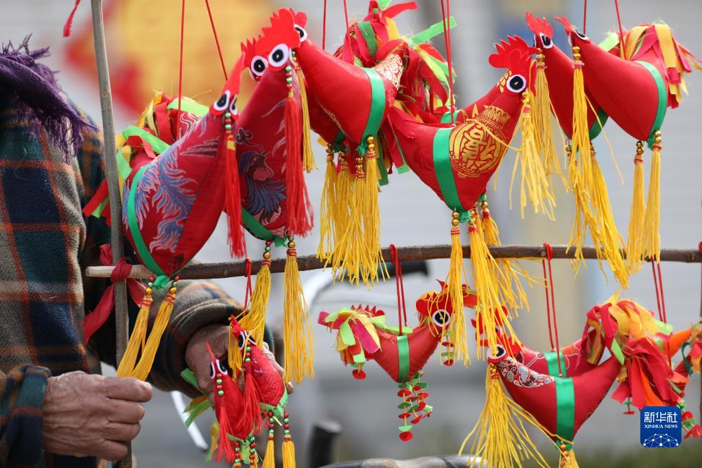 立春将至,山东省临沂市郯城县的民间手工艺人忙着用彩色棉布和棉线等缝制“春鸡”。鲁南部分地区有在立春给孩子佩戴“春鸡”的习俗,以此希望孩子在新的一年里茁壮成长、吉祥平安。