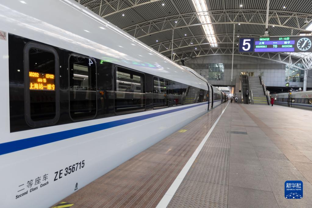2月1日早晨7时许,DJ7715次高铁确认列车在变更为G8262次列车后停靠在上海站,即将搭载旅客前往睢宁站。