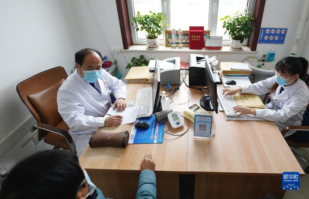 2月2日,王保欣(左)在卫生院门诊出诊。