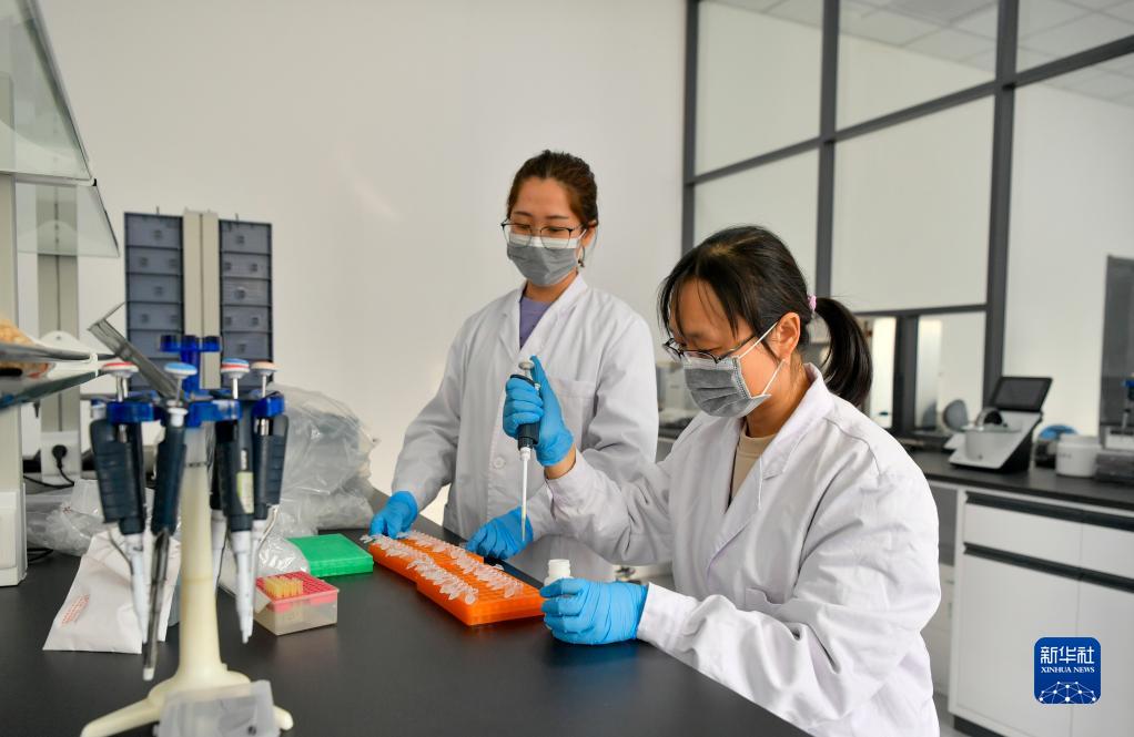 2月2日,研究员在天津市农业科学院种质资源与生物技术研究所实验室内进行小麦种DNA提取工作。