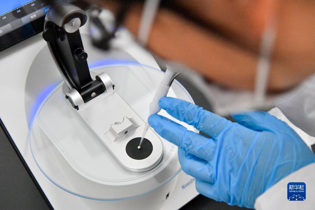2月2日,在天津市农业科学院种质资源与生物技术研究所,研究员操作设备进行小麦种DNA检测。