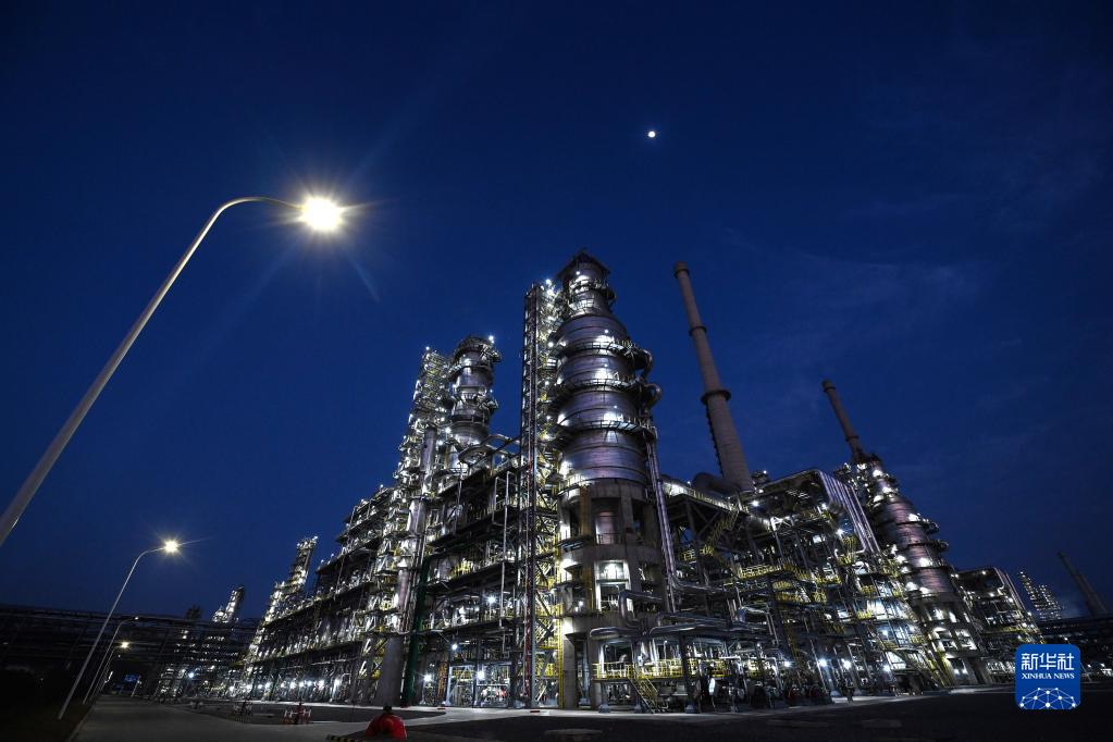 舟山绿色石化基地的炼油装置正在运行中(1月31日摄)。2022年石化基地完成投资395.9亿元,累计加工原油3702.76万吨,实现产值2314亿元。春节期间该基地不停工,一直处于“抓订单、忙生产”的状态。