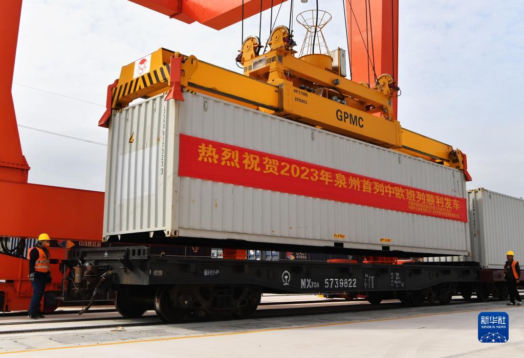 当日,满载着55个集装箱的中欧班列,从位于福建泉州惠安县的兴泉铁路黄塘站驶出。这是泉州今年开出的首趟中欧班列,也是兴泉铁路开通后的首趟泉州中欧班列。据了解,此次班列装载产品主要来自泉州进出口企业,货重601.4吨,货值约262.5万美元。