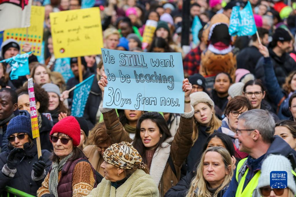当日,约50万英国教师、火车司机和公务员举行罢工,要求增加薪酬。