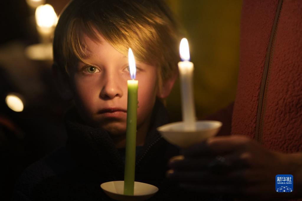 1月27日,一名男孩在美国加利福尼亚州半月湾市举行的守夜活动中哀悼枪击事件遇难者。