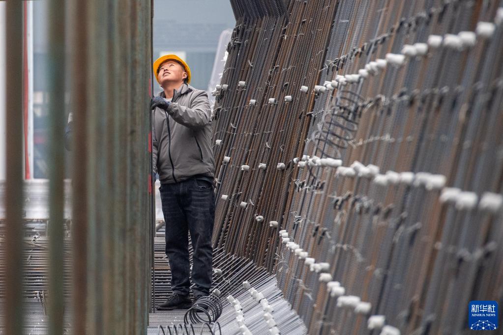 2月4日,在渝昆高铁重庆段建设施工现场,施工人员在进行作业。