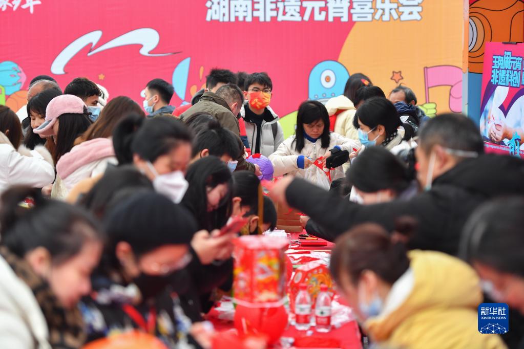 2月4日,市民和游客在湖南非遗元宵喜乐会现场体验非遗项目。