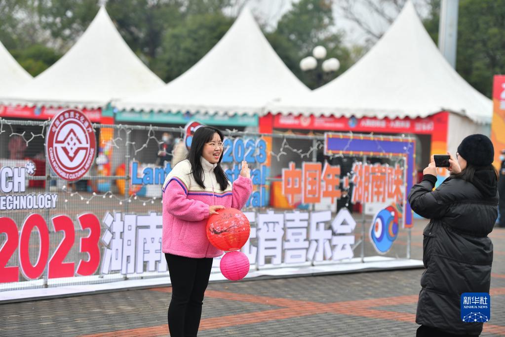 2月4日,市民和游客在湖南非遗元宵喜乐会现场拍摄vlog。