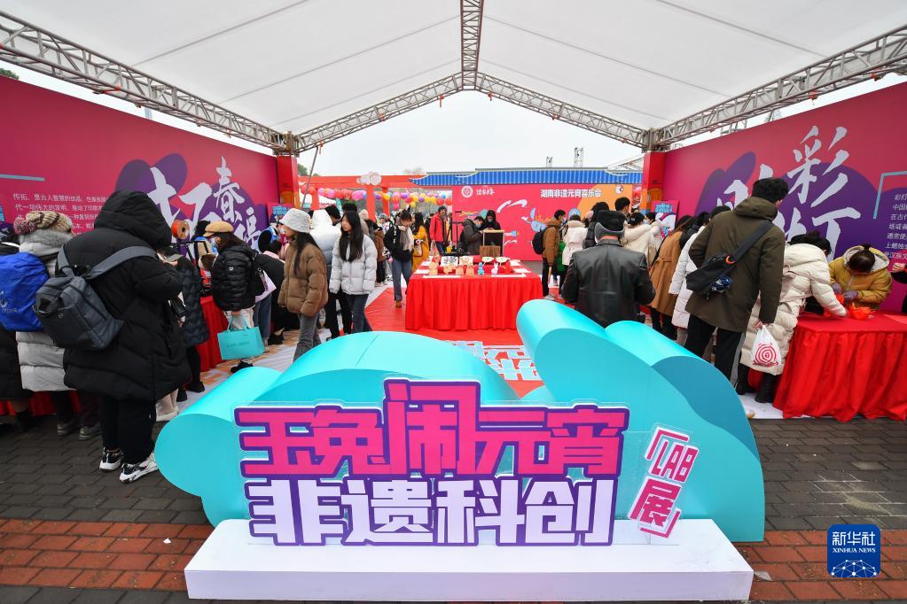2月4日,市民和游客在湖南非遗元宵喜乐会现场的非遗科创展区游玩。