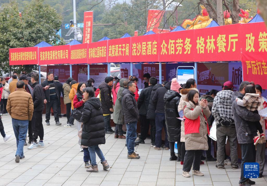 2月4日,在湖南张家界市武陵源区协合乡举行的“春风送暖”农村用工招聘会上,村民在了解岗位信息。当地20多家企业提供采茶工、厨师、讲解员、酒店服务员等500多个就业岗位,帮助更多农村群众实现家门口就业。
