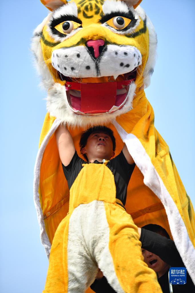 当日,河南省焦作市温县陈家沟村流传数百年的传统民俗节目“陈家沟舞虎”精彩上演,让观众大饱眼福。