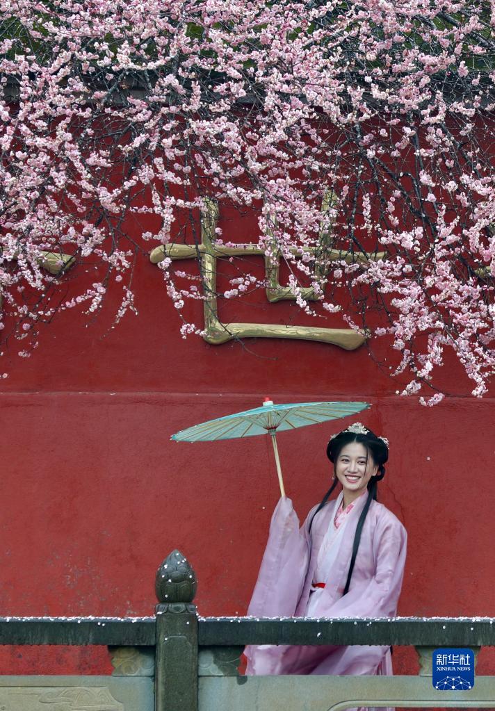立春时节,位于福州北峰山区的千年古刹林阳寺梅花相继绽放,吸引众多游客前来游玩赏花。