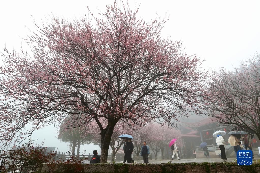 立春时节,位于福州北峰山区的千年古刹林阳寺梅花相继绽放,吸引众多游客前来游玩赏花。
