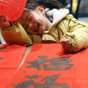 2月4日,小朋友在殷墟考古文旅小镇参观。
