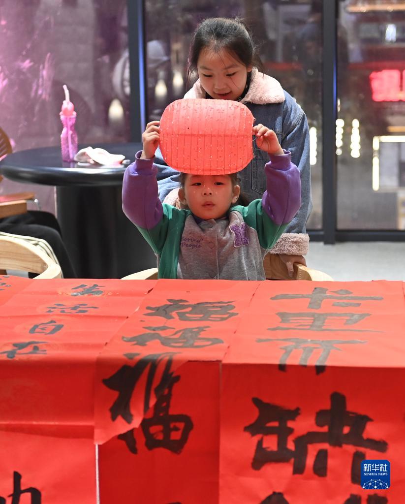 2月4日,两名小朋友在一处文化体验馆里玩耍。