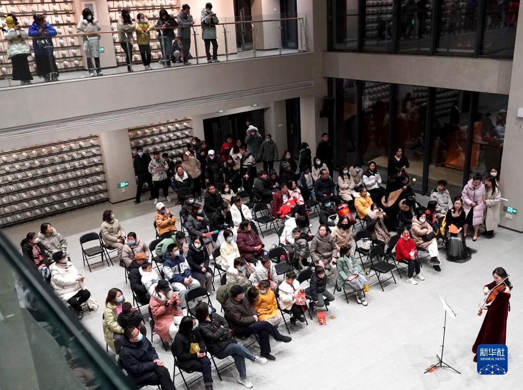 2月4日,游客在殷墟考古文旅小镇欣赏音乐会。
