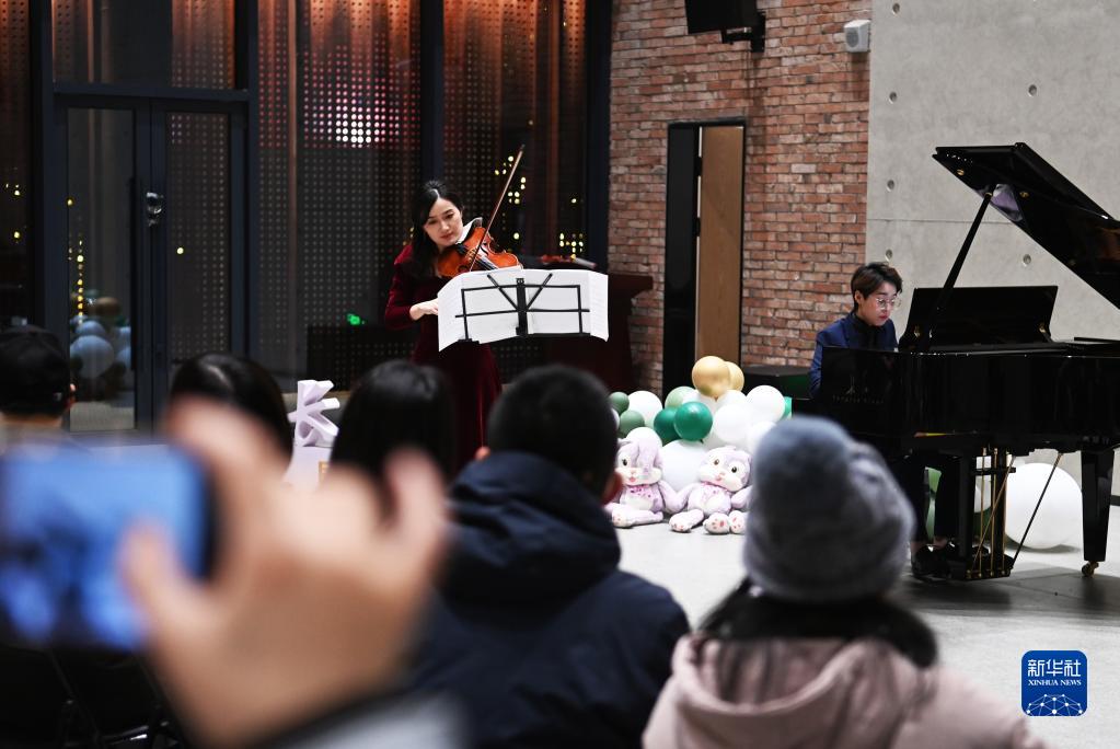 2月4日,观众在欣赏小提琴与钢琴演奏。