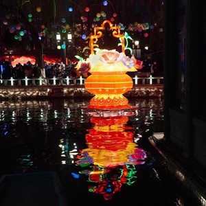 元宵节来临之际,山东省济南市的趵突泉等多处名泉,潺潺泉水与彩灯交相辉映,流光溢彩的独特景观吸引了不少市民前来赏泉观灯,喜迎元宵佳节。