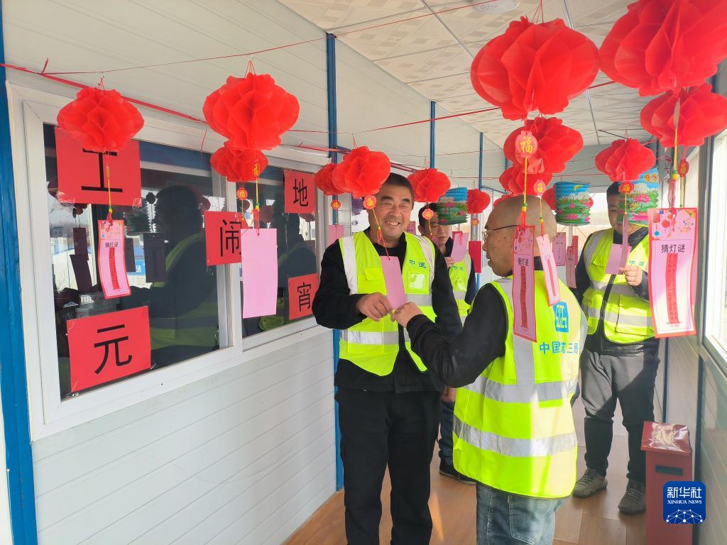 2月5日,在位于河北廊坊的中建三局北京公司某项目工地,职工在元宵节活动上猜灯谜。