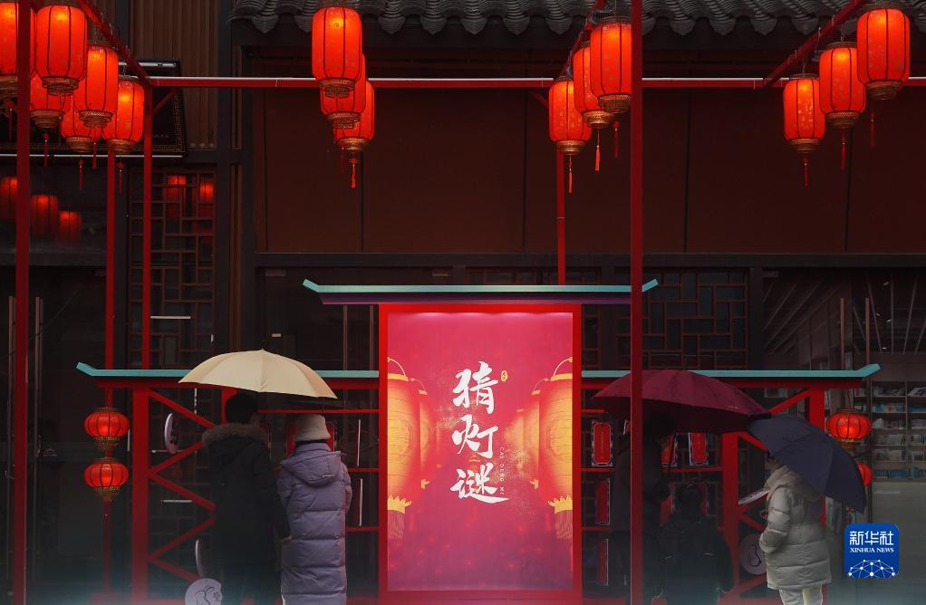 2月5日,游客在南昌市绳金塔历史文化街区猜灯谜。