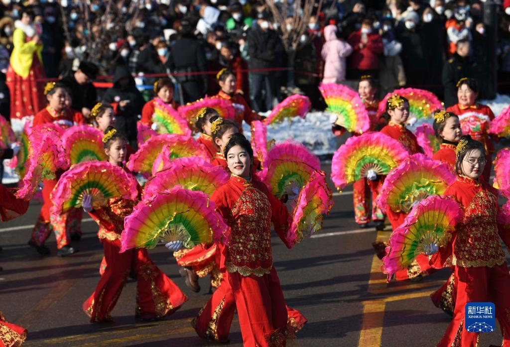 2月5日,新疆塔城地区额敏县群众在表演社火。