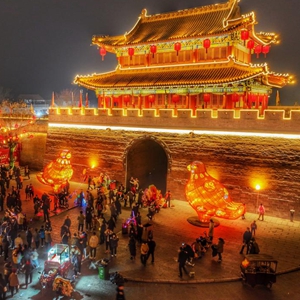 当日是农历正月十五元宵节,在河南省浚县古城里,古色古香的建筑配合璀璨灯光,吸引众多游客沉醉其中,度过难忘的元宵夜。