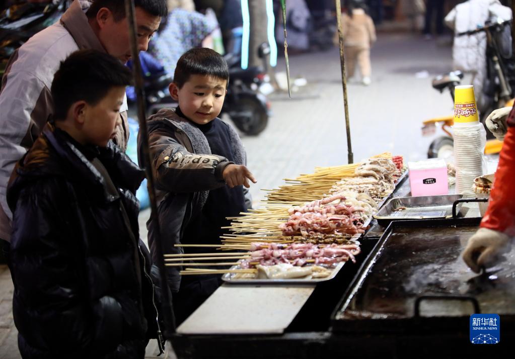2月5日,游客驻足浚县古城的一处小吃摊前。