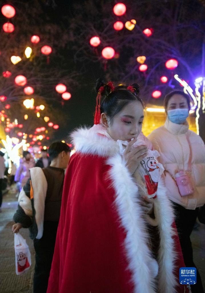 当日是农历正月十五元宵节,在河南省浚县古城里,古色古香的建筑配合璀璨灯光,吸引众多游客沉醉其中,度过难忘的元宵夜。
