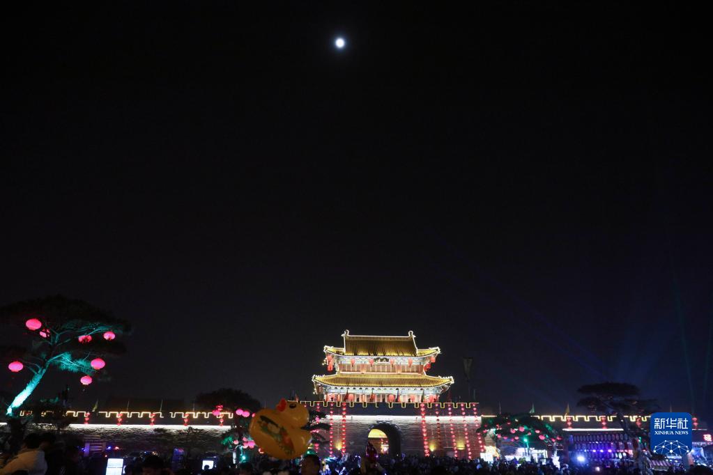 当日是农历正月十五元宵节,在河南省浚县古城里,古色古香的建筑配合璀璨灯光,吸引众多游客沉醉其中,度过难忘的元宵夜。