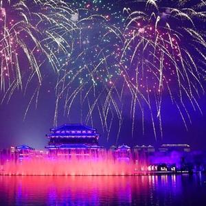 2月5日晚,2023西安曲江上元烟花晚会在大唐芙蓉园举行。晚会上灯在水里游、人在船中舞、焰火漫天空,西安市劳模及先进工作者、公安和消防及医护人员等社会各界人士代表千余人和3000名市民代表相聚观演。