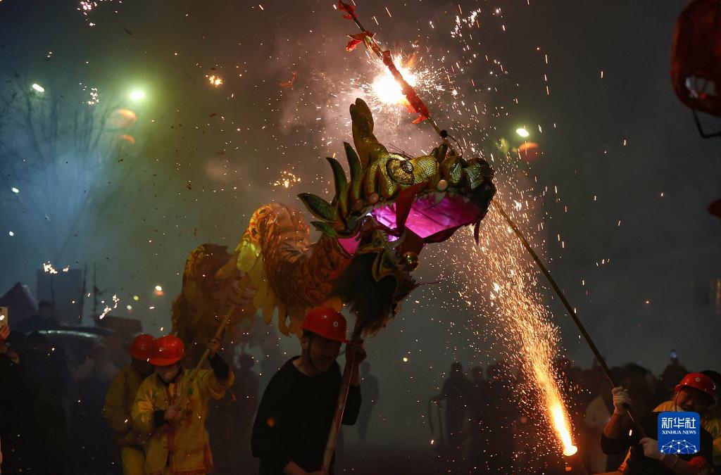 2月5日,人们在贵州省黔东南苗族侗族自治州丹寨县参加“舞龙嘘花”活动。