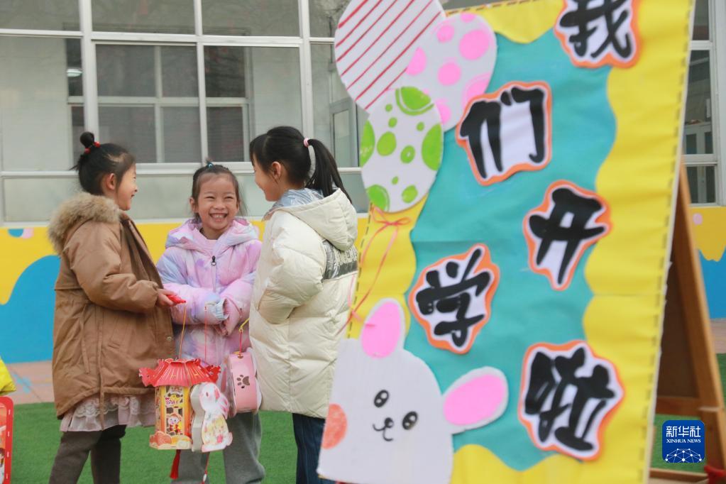 2月6日,在山东省高密市农丰幼儿园,小朋友相聚在校园里兴高采烈。