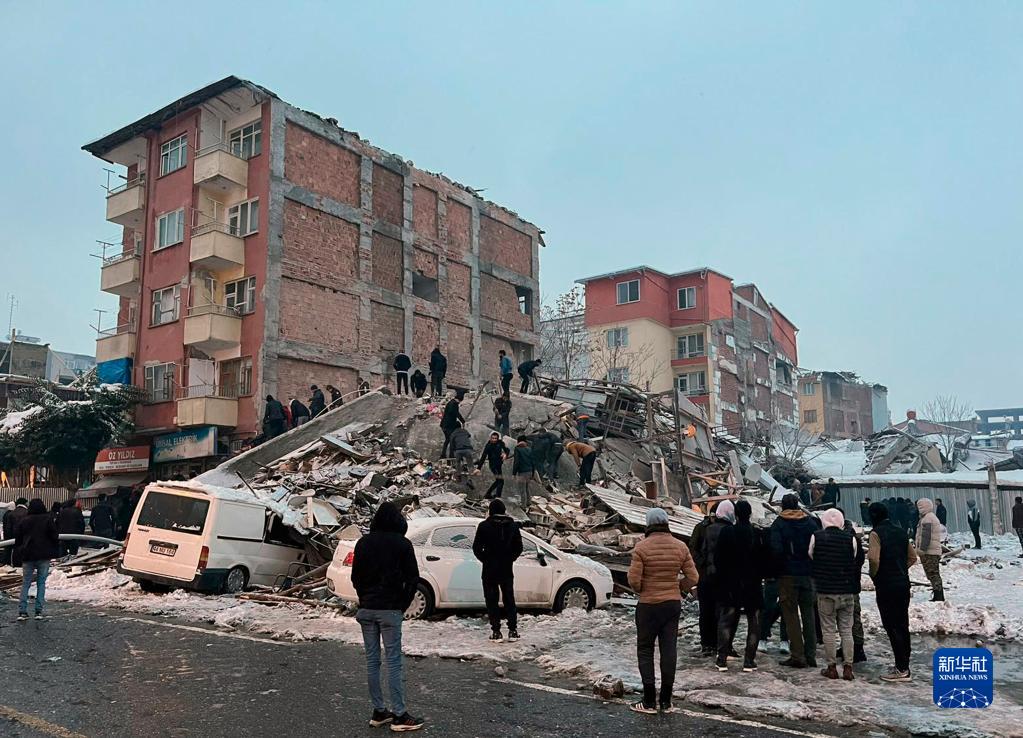 2月6日,人们聚集在土耳其马拉蒂亚一处倒塌的建筑附近。