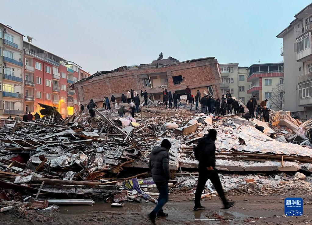 2月6日,人们聚集在土耳其马拉蒂亚一处倒塌的建筑附近。