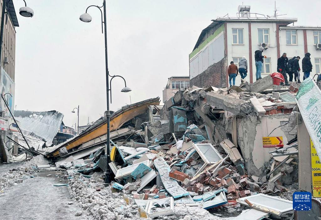 2月6日,人们聚集在土耳其马拉蒂亚一处倒塌的建筑附近。