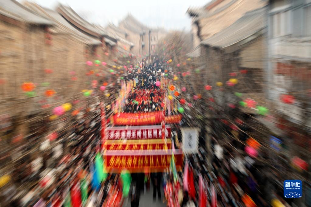 2月6日,社火团队在庙会上行进。