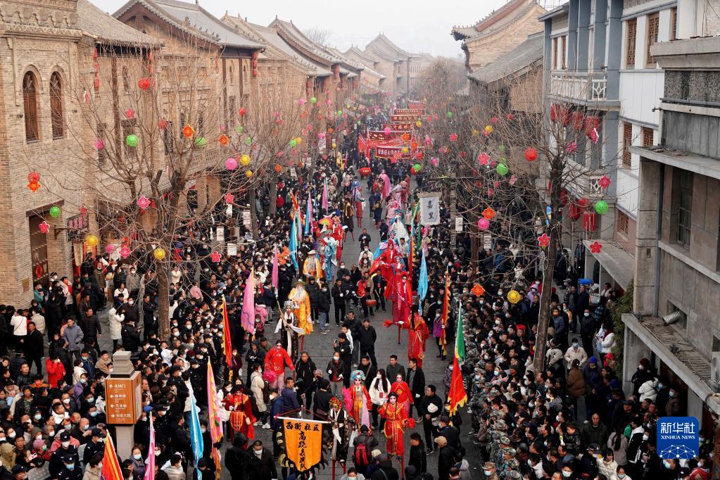 当日是农历正月十六,在河南省浚县举行的正月古庙会上,几十支社火团队轮番表演,踩高跷、扭秧歌、耍狮子,锣鼓喧天,热闹非凡,形成一道富有特色的中原文化景观。河南省浚县的正月古庙会已有1600多年历史,有“华北第一庙会”之称,被誉为民俗文化的“活化石”,是中国民间文化保护工程项目、国家级非物质文化遗产。
