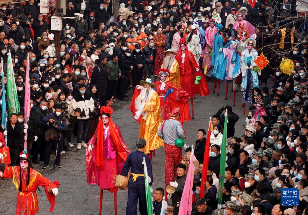当日是农历正月十六,在河南省浚县举行的正月古庙会上,几十支社火团队轮番表演,踩高跷、扭秧歌、耍狮子,锣鼓喧天,热闹非凡,形成一道富有特色的中原文化景观。河南省浚县的正月古庙会已有1600多年历史,有“华北第一庙会”之称,被誉为民俗文化的“活化石”,是中国民间文化保护工程项目、国家级非物质文化遗产。