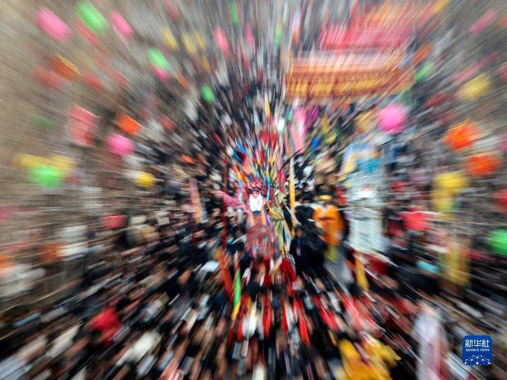 当日是农历正月十六,在河南省浚县举行的正月古庙会上,几十支社火团队轮番表演,踩高跷、扭秧歌、耍狮子,锣鼓喧天,热闹非凡,形成一道富有特色的中原文化景观。河南省浚县的正月古庙会已有1600多年历史,有“华北第一庙会”之称,被誉为民俗文化的“活化石”,是中国民间文化保护工程项目、国家级非物质文化遗产。