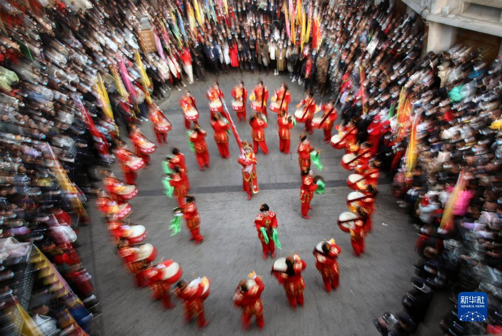 当日是农历正月十六,在河南省浚县举行的正月古庙会上,几十支社火团队轮番表演,踩高跷、扭秧歌、耍狮子,锣鼓喧天,热闹非凡,形成一道富有特色的中原文化景观。河南省浚县的正月古庙会已有1600多年历史,有“华北第一庙会”之称,被誉为民俗文化的“活化石”,是中国民间文化保护工程项目、国家级非物质文化遗产。
